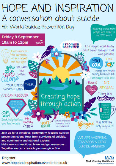Inspiring words from people who came to our 2021 event for World Suicide Prevention Day on Friday 9 September, 10.00am to 12.00pm through Zoom.